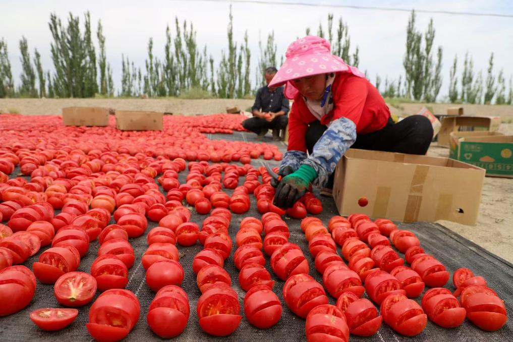 Cultivo y procesamiento de tomates en Xinjiang contribuyen al desarrollo económico local